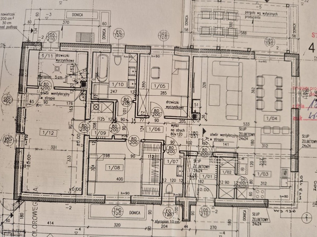 Atutem nieruchomości jest spora działka z częściowo zagospodarowanym ogrodem obsadzonym drzewkami owocowymi. Posesja jest ogrodzona i posiada monitoring uzbrojony w cztery kamery. Działka posiada pozwolenie na budowę garażu wolnostojacego. Wnętrze budynku to spory wiatrołap, przestronny salon z aneksem kuchennym i spiżarką. W dalszej częsci znajdują sie trzy sypialnie z dużą łazienką dla domowników i osobnym wc dla gości. Miejsce na przedmioty gospodarcze to 6,5 metrowe pomieszczenie oznaczone w projekcie jako kotłownia w którym umieszczone są urządzenia pompy ciepła i stacja uzdatniania wody. Poddasze posiada wyprowadzone instalacje, co daje możliwość stworzenia dodatkowej powierzchni użytkowej.