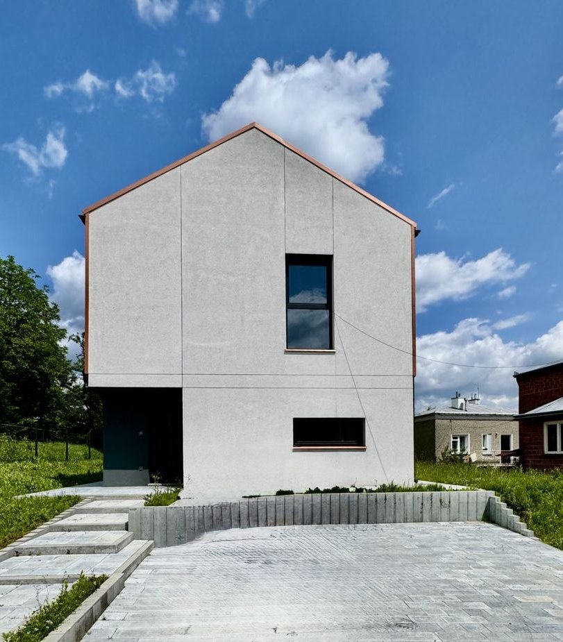 Dom o powierzchni 120,9 m2 usytuowany jest na działce w kształcie prostokąta o powierzchni 4,24 arów. Działka ogrodzona z trzech stron panelem ogrodzeniowym.