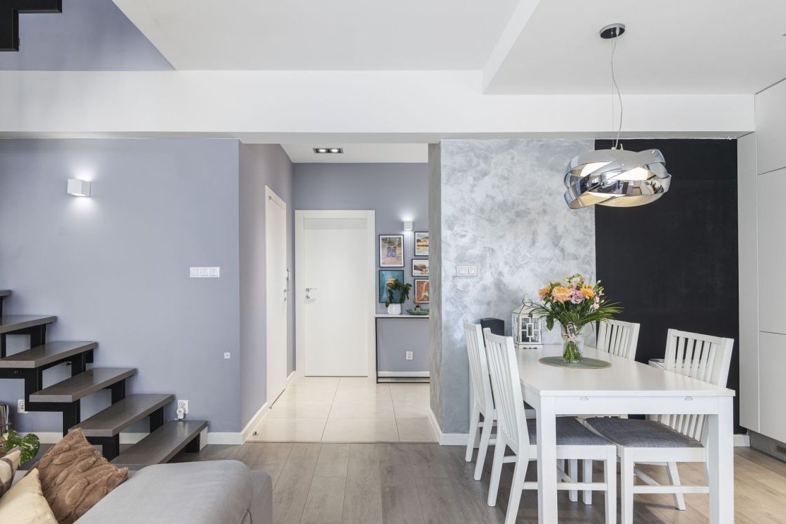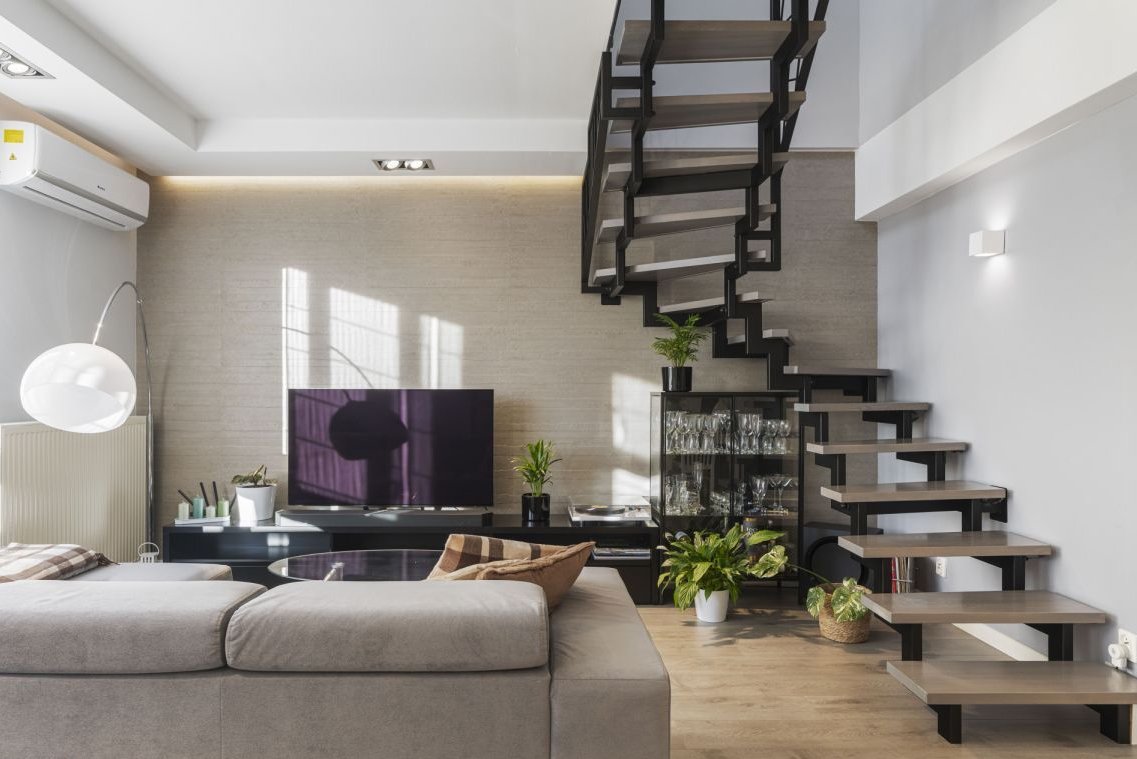 - schody (Indywidualny Projekt): Stalowa konstrukcja malowana proszkowo (technologia anti-fingerprint) z jesionowymi stopniami. Inteligentny system podświetlenia LED (czujniki ruchu, sterowanie z aplikacji).