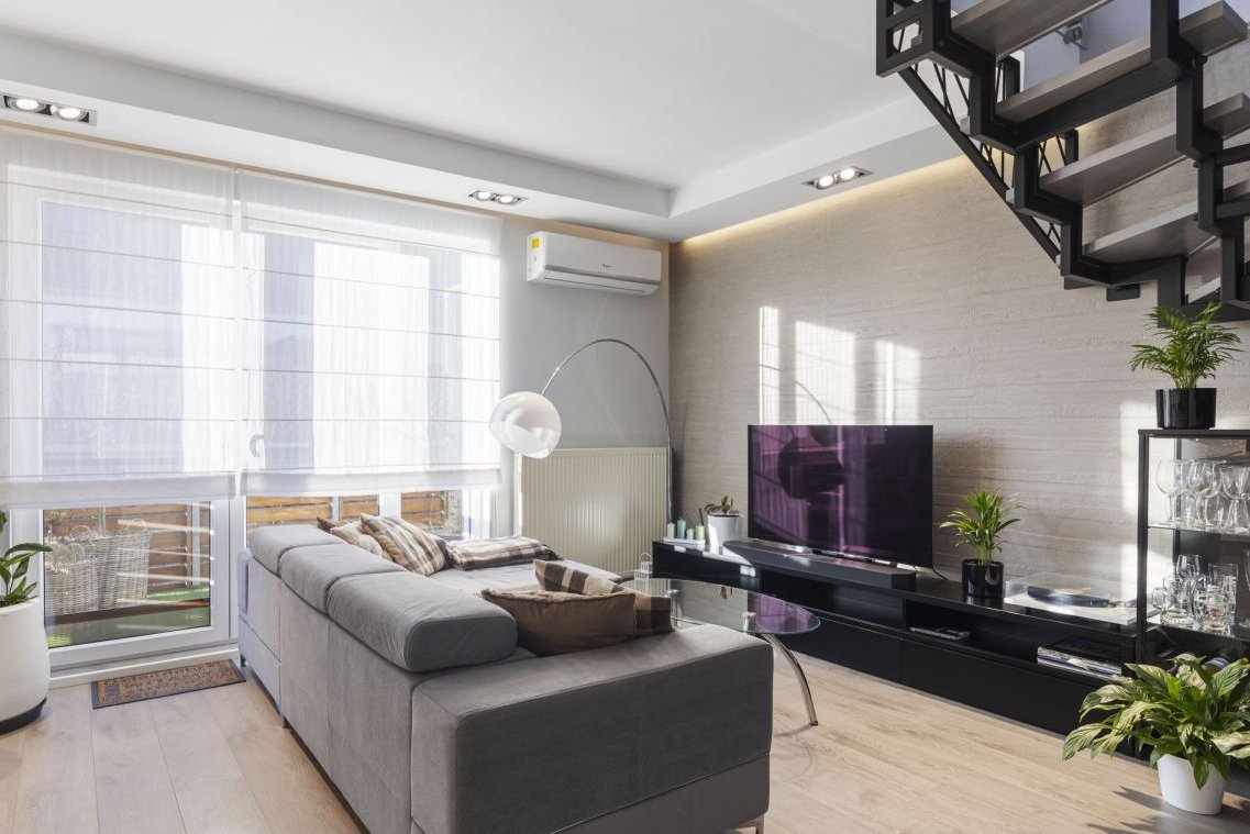 Innowacyjna Klimatyzacja Kanałowa: Jednostka Gree (5 kW) ukryta na poddaszu. Dzięki anemostatom chłodzenie i grzanie jest niezwykle komfortowe (brak efektu bezpośredniego nawiewu).
