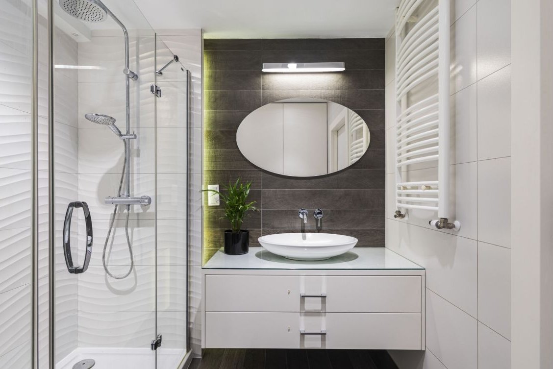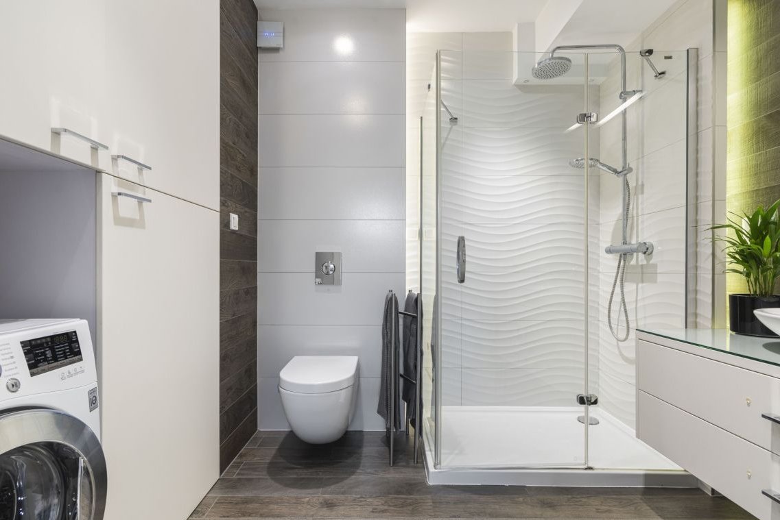 - łazienka z kabiną prysznicową i ogrzewaniem podłogowym (ceramika Porcelanosa oraz armatura marek Villeroy & Boch, Kludi i Grohe Select )