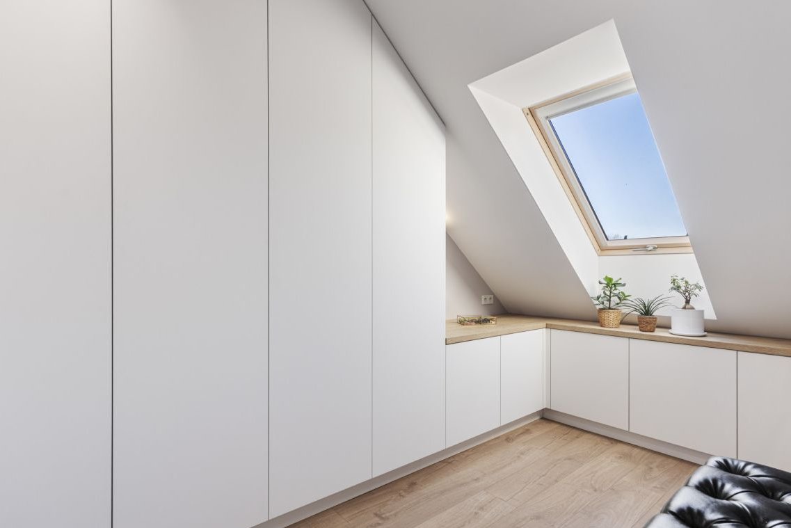 - garderoba z zabudową szaf i oknem