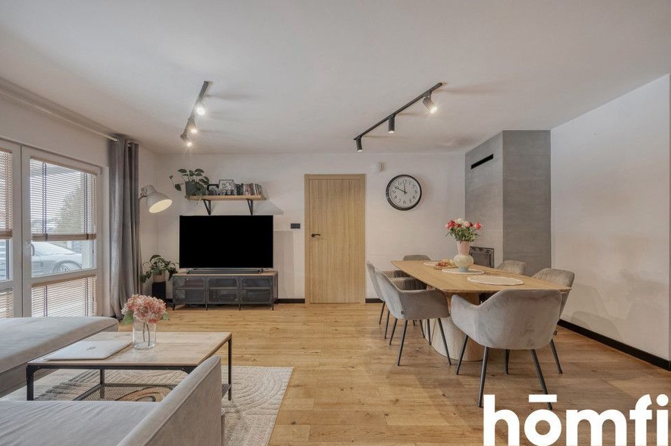 Dom o powierzchni użytkowej 128,55 m² jest w pełni wykończony, umeblowany i gotowy do zamieszkania od razu, bez konieczności ponoszenia dodatkowych kosztów.