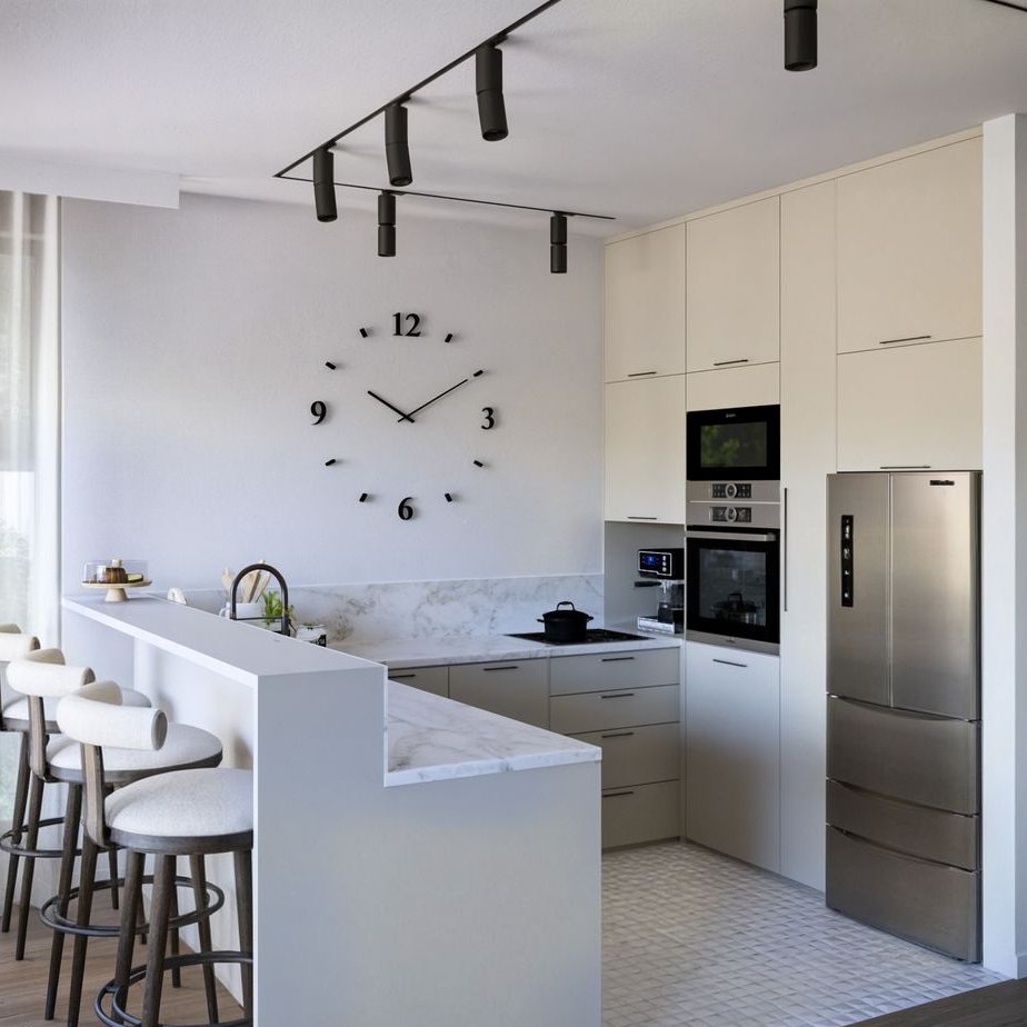wygodna kuchnia połączona z jadalnią,