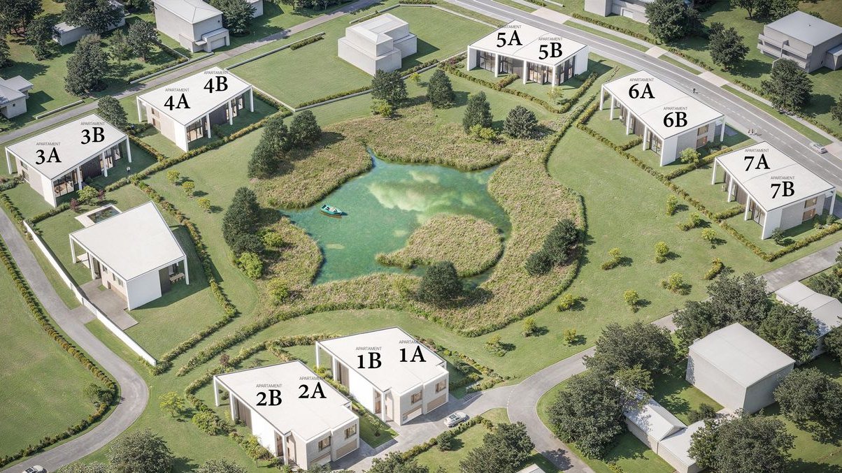 Docelowo planowane jest kameralne osiedle składające się z 9 willi dwulokalowych położonych wokół stawu, harmonijnie wpisujących się w istniejący krajobraz.