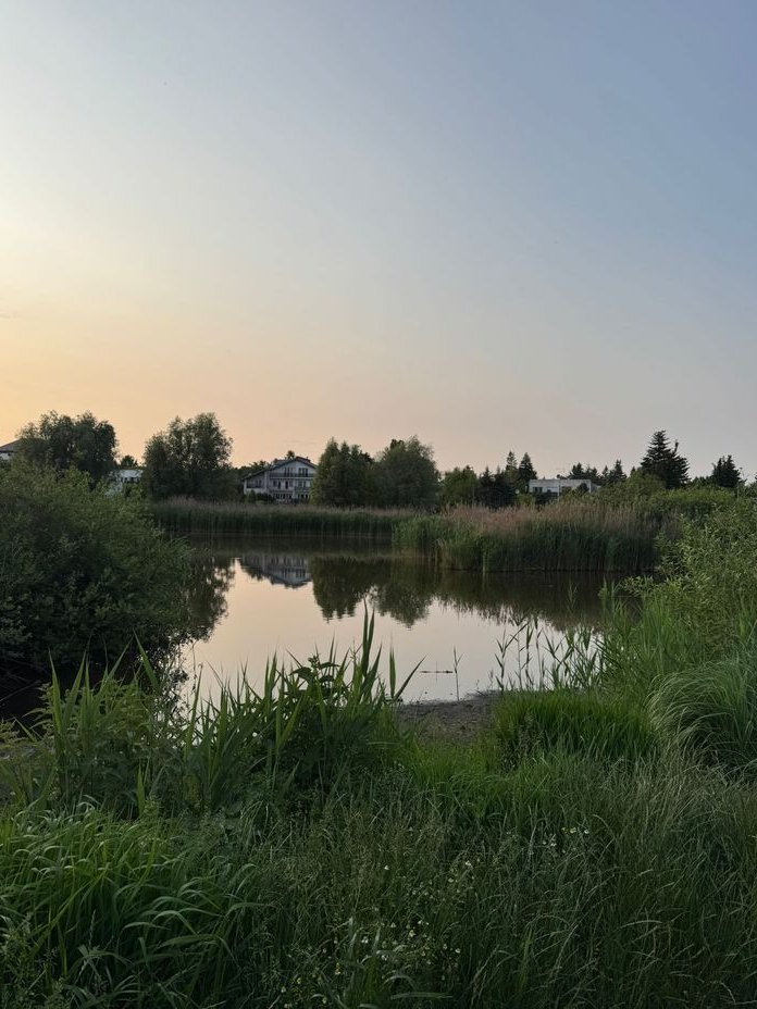 - widok na staw rozpościerający się z salonu i sypialni głównej