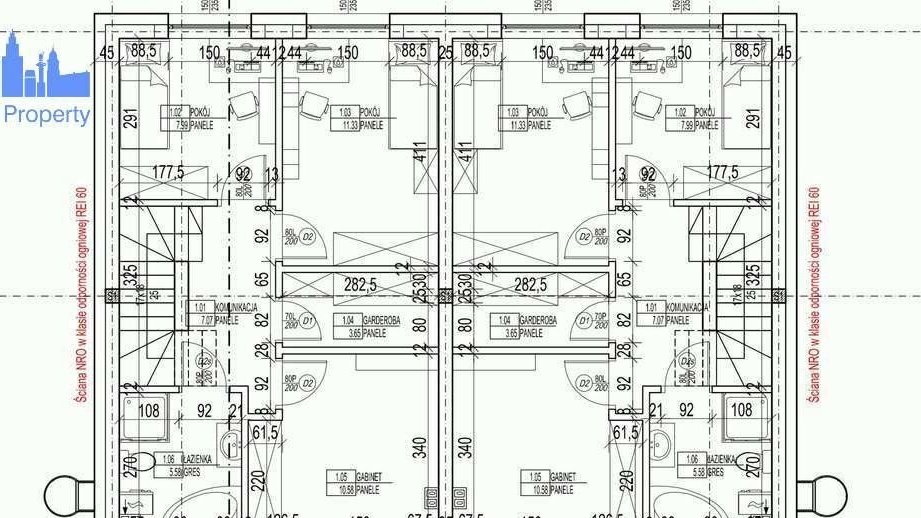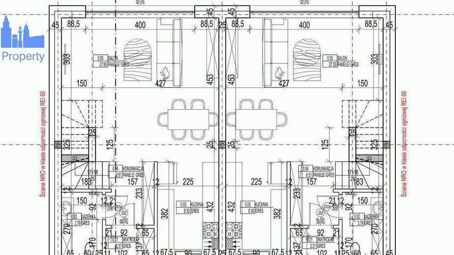 Budynek wykonany został z tradycyjnych materiałów wysokiej jakości. Konstrukcja z czerwonej ceramiki, stropy żelbetowe, dach płaski z dobrą izolacją termiczną. Na całości ogrzewanie podłogowe, zasilane z pieca gazowego. W wypadku potrzeby, za jakiś czas będzie można z łatwością podłączyć pompę ciepła.