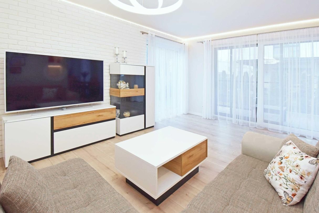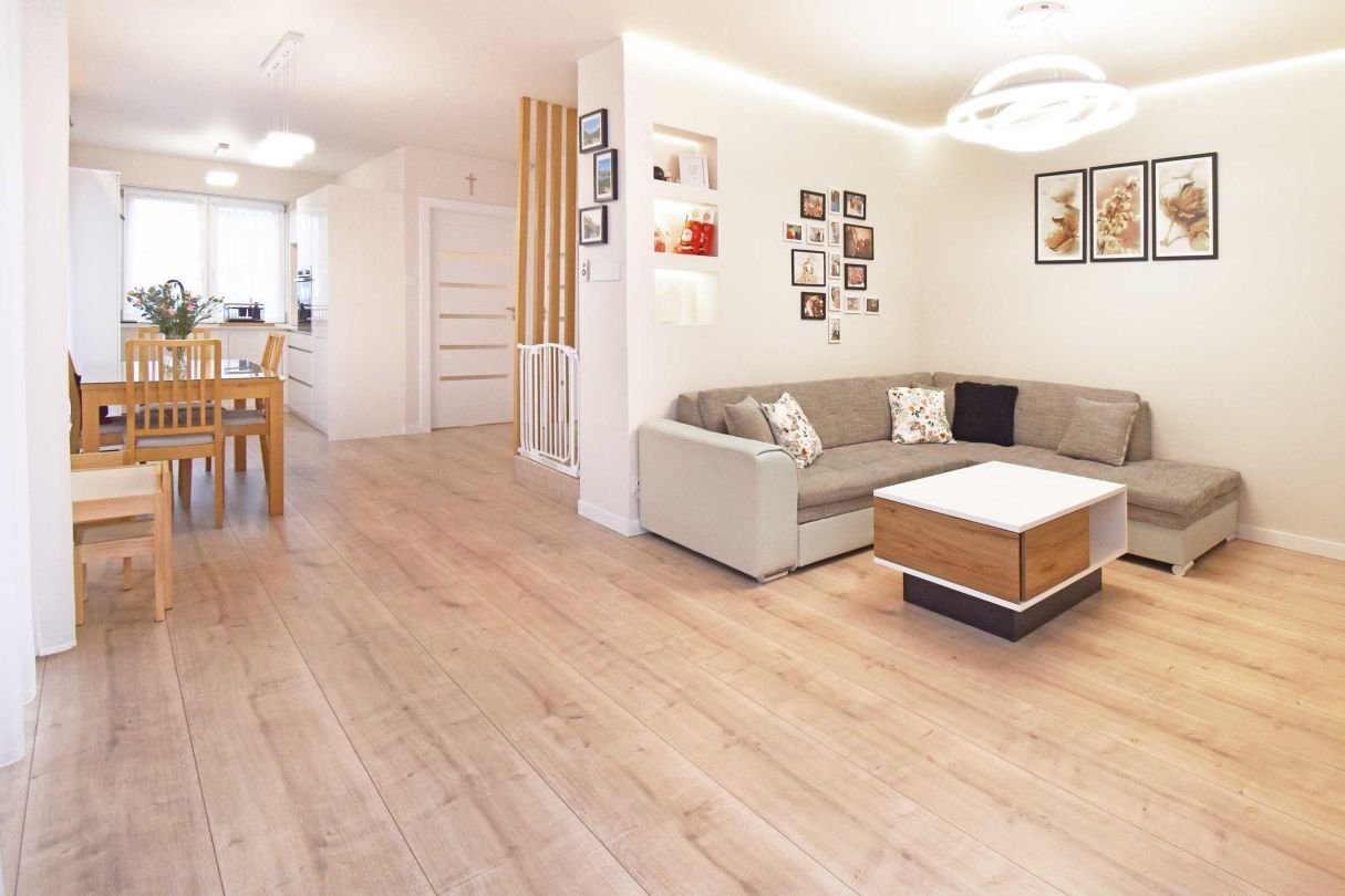 - Duży i świetnie doświetlony salon połączony z wyjściem na ogród