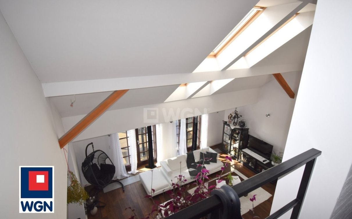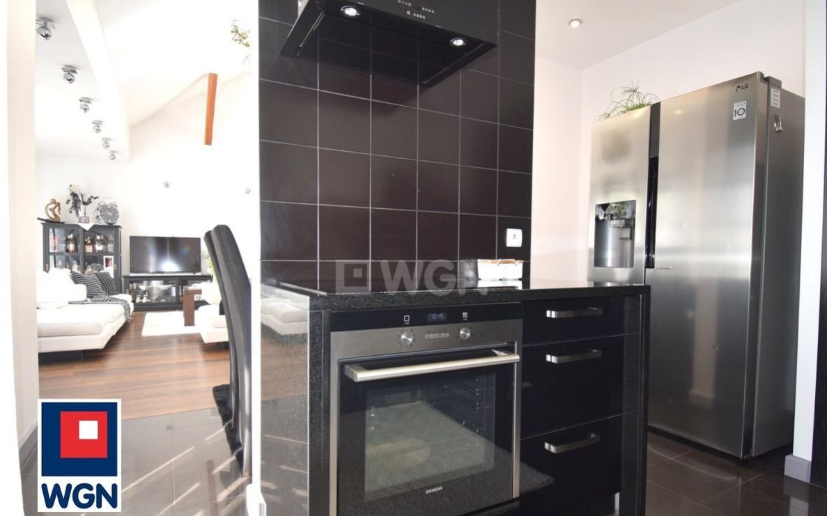 Główną część parteru zajmuje duży (35 m2), jasny salon z antresolą, doświetlony dodatkowo przez okna dachowe, połączony z jadalnią i w pełni wyposażoną w markowe urządzenia kuchnią, w nowoczesnej zabudowie.