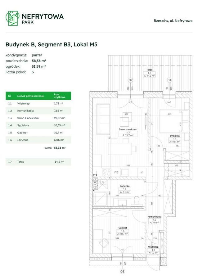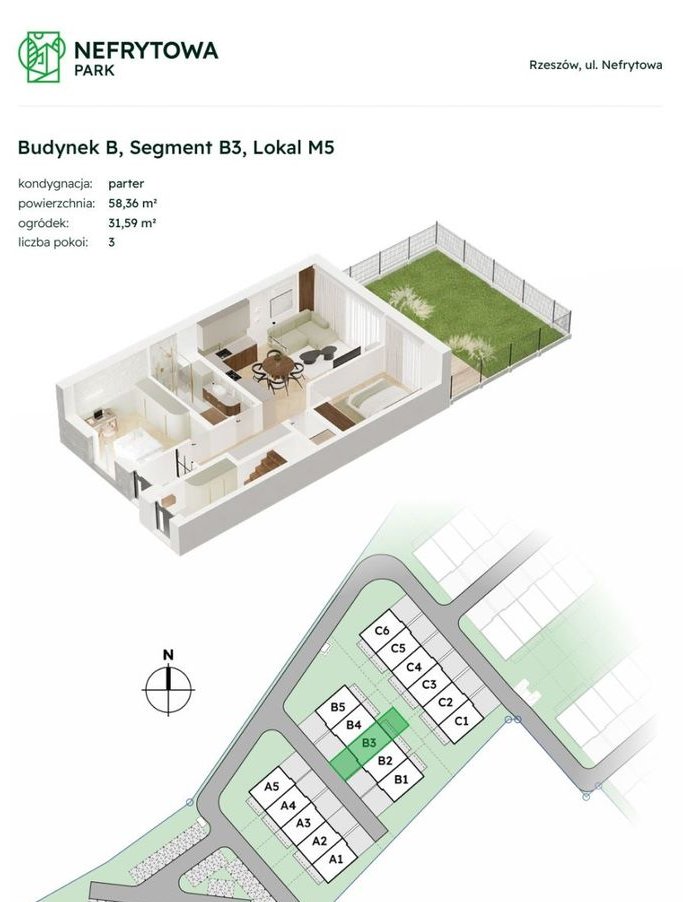 OFERTA DOTYCZY MIESZKANIA NA PARTERZE O POWIERZCHNI 58,36 M2 Z PRYWATNYM SKRAJNYM OGRODEM O POWIERZCHNI 31,59 M2.