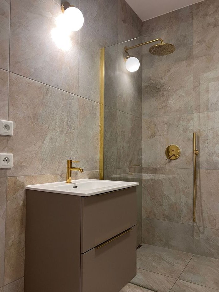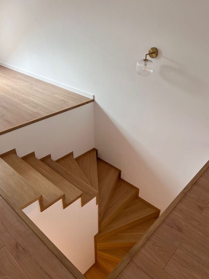 - prywatną (sypialnianą) na piętrze, z dwoma sypialniami i łazienką