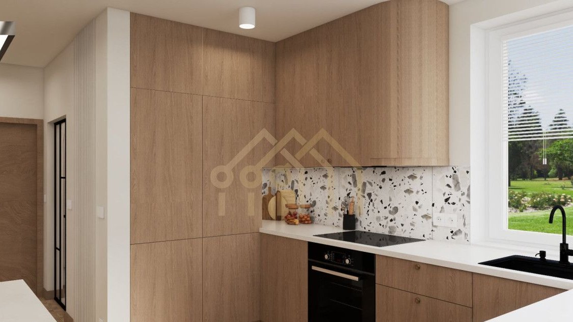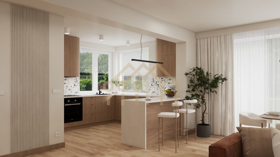 przestronny salon z aneksem kuchennym i dużymi oknami balkonowymi - naturalne światło przez cały dzień - 41,82 m²