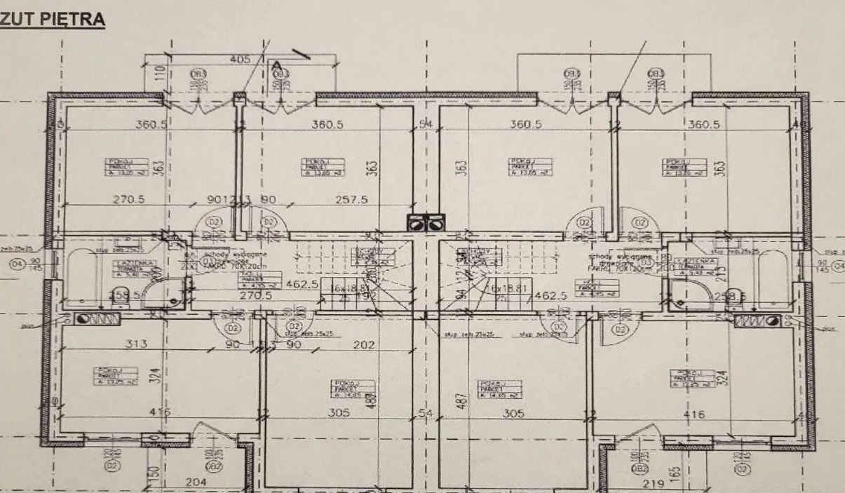 - 4 sypialnie odpowiednio : 13,25/13,05/14,85/13,05 m2
