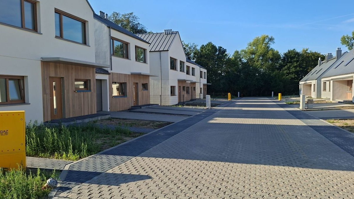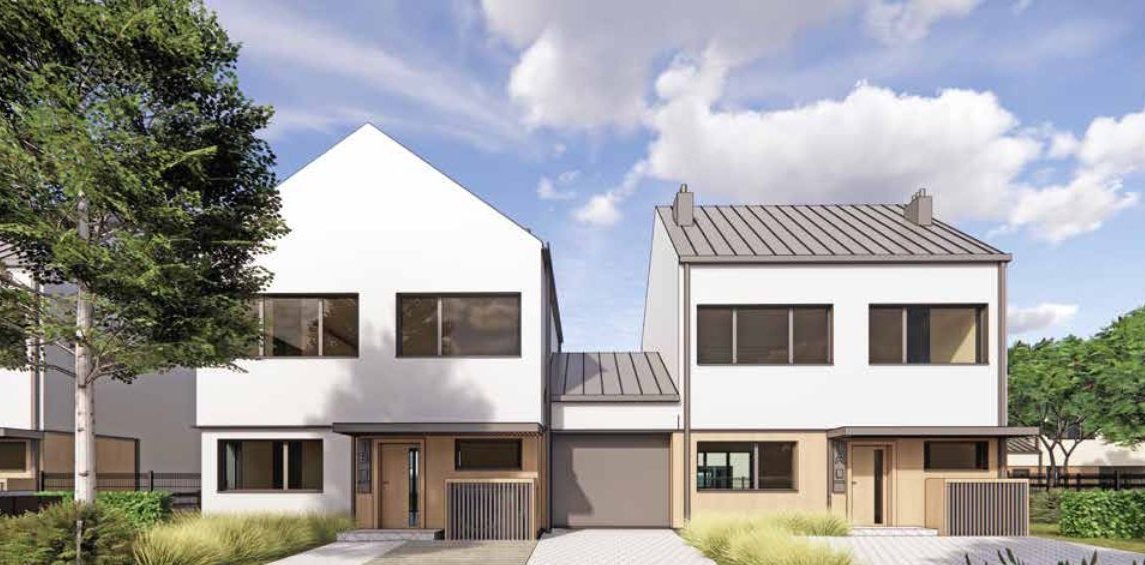Do każdego domu przynależą garaż z miejscem postojowym lub dwa miejsca postojowe oraz działka (od 230 m2 do 450 m2).