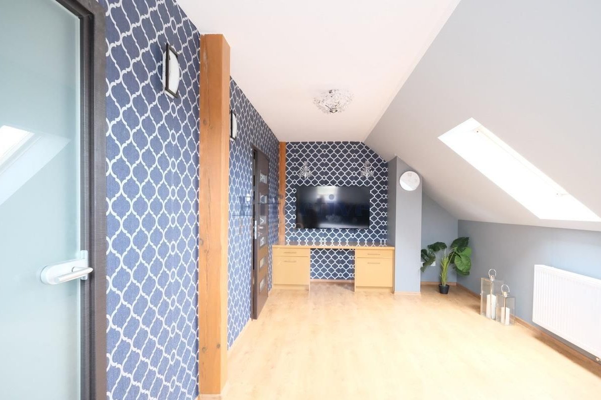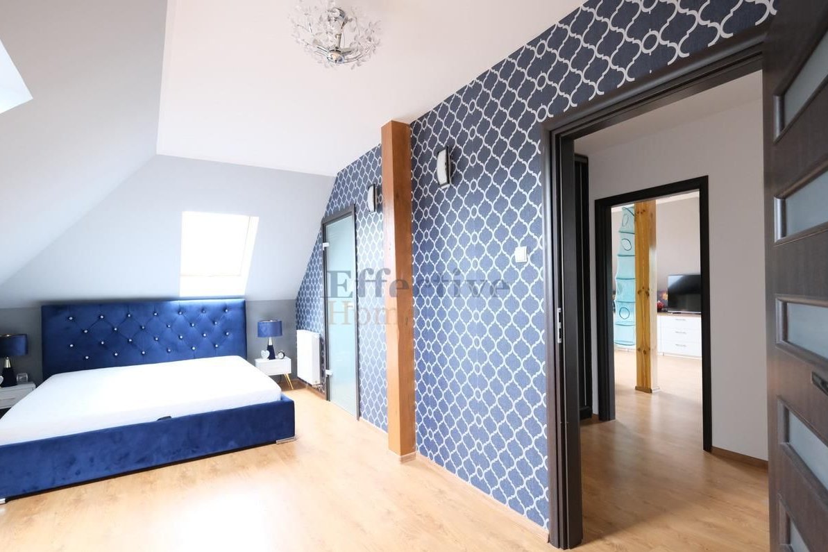 Trzy dobrze doświetlone przestronne sypialnie (16m, 16m, 13m) w tym jedna z garderobą (3,5m), pozostałe z wyjściem na balkon. Przedpokój z szafą oraz wejściem na stryszek na piętrze także pięknie zaaranżowany pokój kąpielowy (7m).