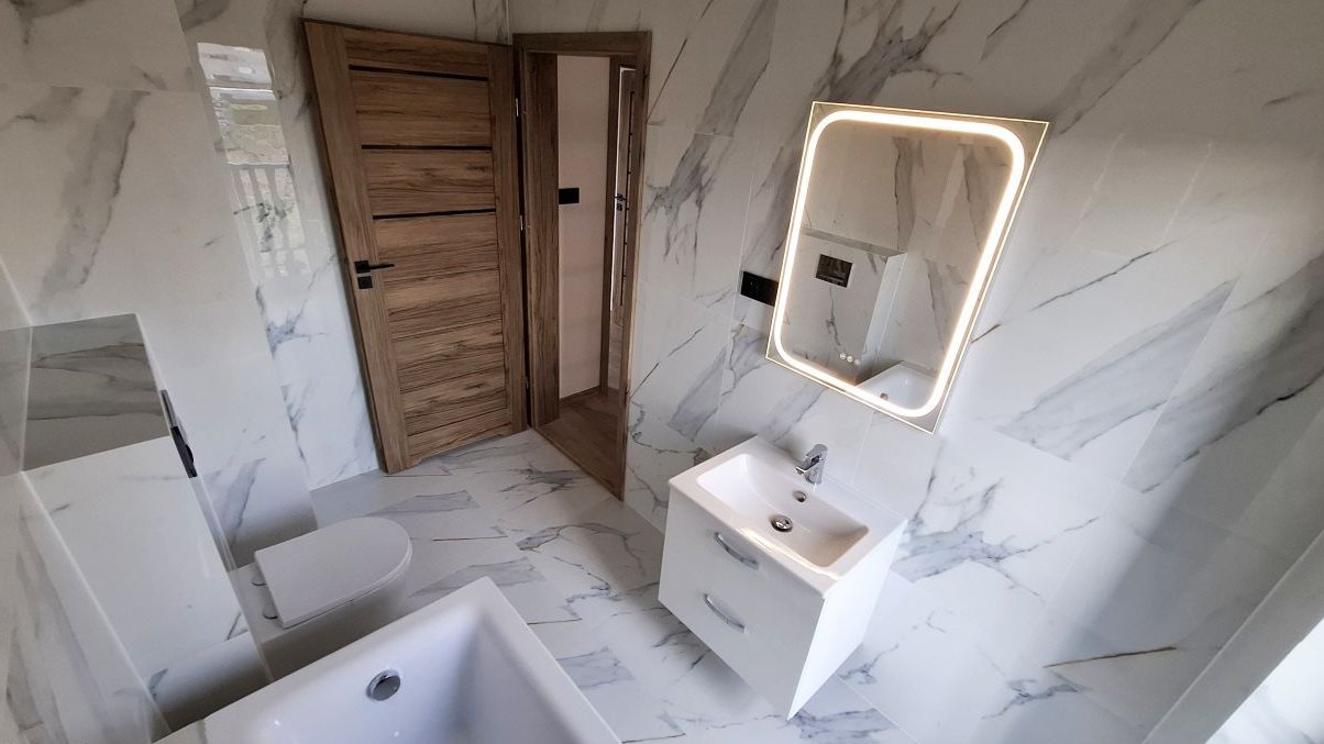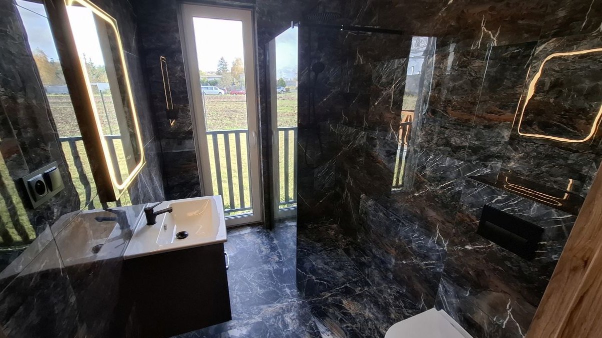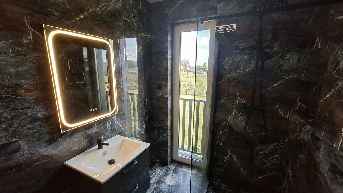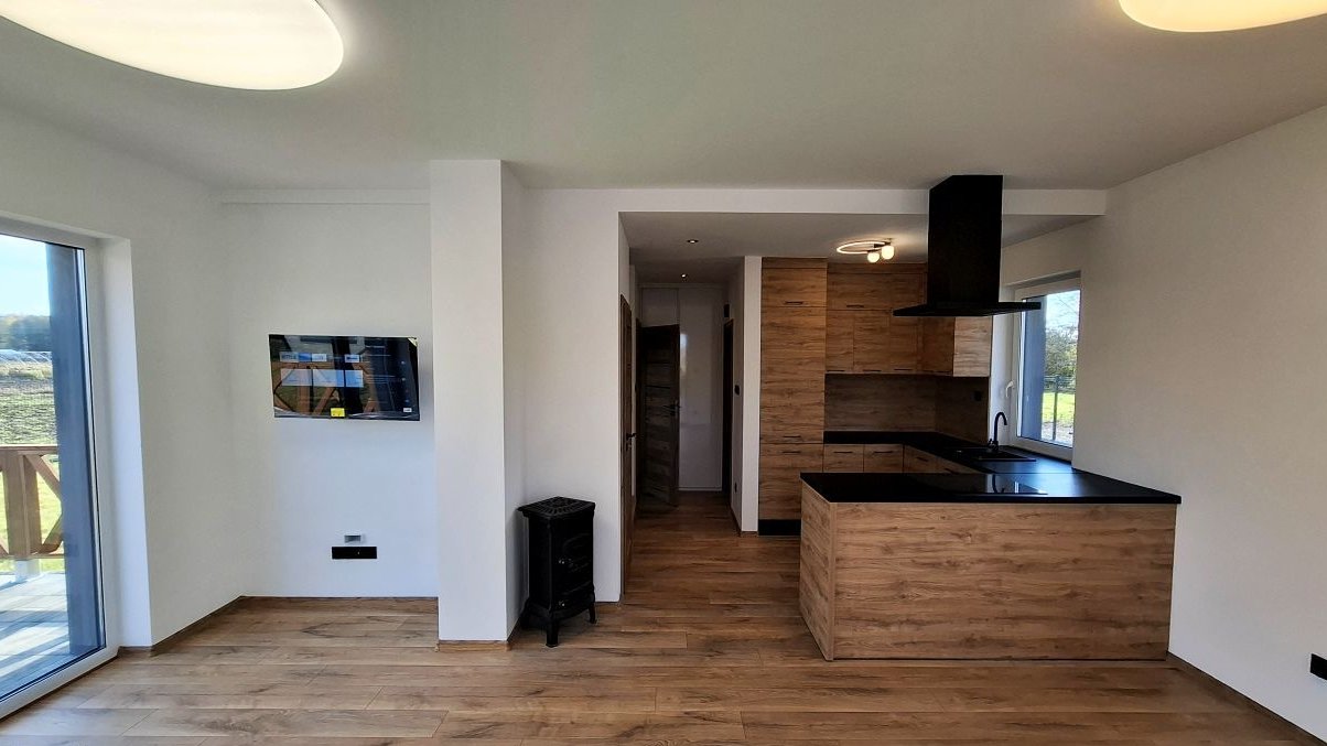 Dom o przemyślanym układzie pomieszczeń został wykończony z dbałością o każdy detal, z użyciem materiałów najwyższej jakości. Wnętrza zachwycają nowoczesnym designem, jasnymi przestrzeniami i starannie dobranymi elementami wyposażenia. Podwyższony standard wykończenia to gwarancja trwałości i estetyki na lata, a także niskich kosztów utrzymania.