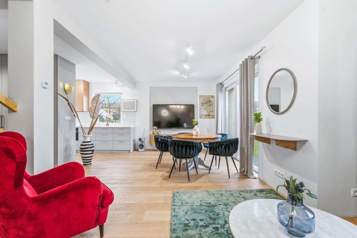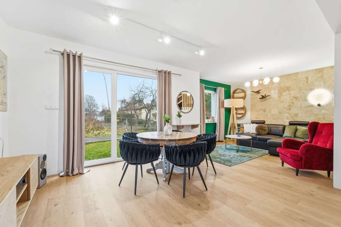 Dom jest jasny, słoneczny i niezwykle przytulny. Ekspozycja na trzy strony świata sprawia, że naturalne światło towarzyszy Ci przez cały dzień, a wnętrza żyją od poranka do zachodu słońca.