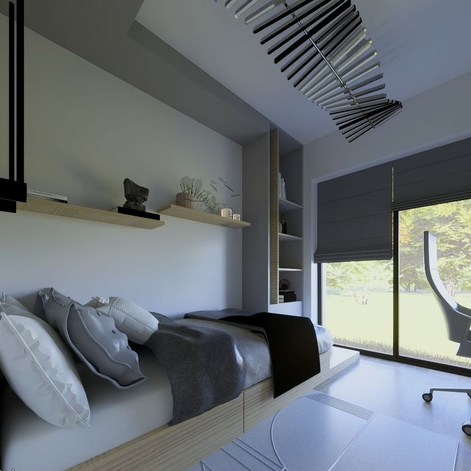 • Okna 3 szybowe kolor antracyt - obustronny, drzwi wejściowe wraz z doświetlem, brama segmentowa antracyt sterowana elektrycznie.
