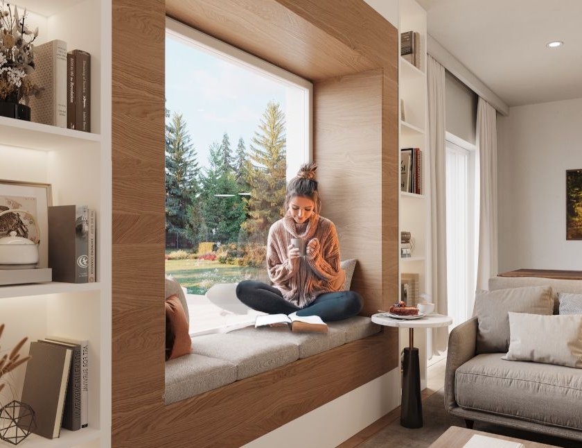 - Kolor wewnętrznych ram okiennych dostosowany do aranżacji wnętrza