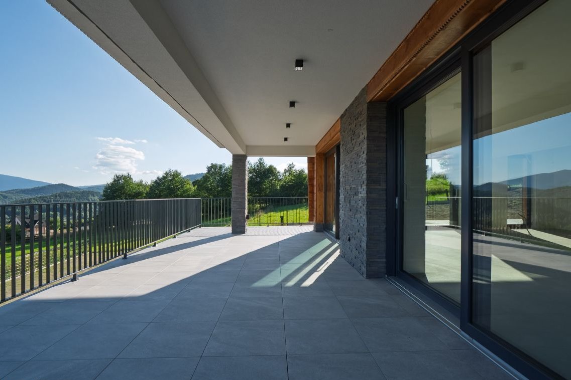 W domu tym zostały wykorzystane nowoczesne rozwiązania technologiczne, takie jak pompa ciepła, ogrzewanie podłogowe, rekuperacja, alarm, monitoring oraz została rozprowadzona instalacja klimatyzacji. Duże okna, ogromne tarasy, podhalańska architektura oraz piękny widok na góry idealnie ze sobą współgrają.