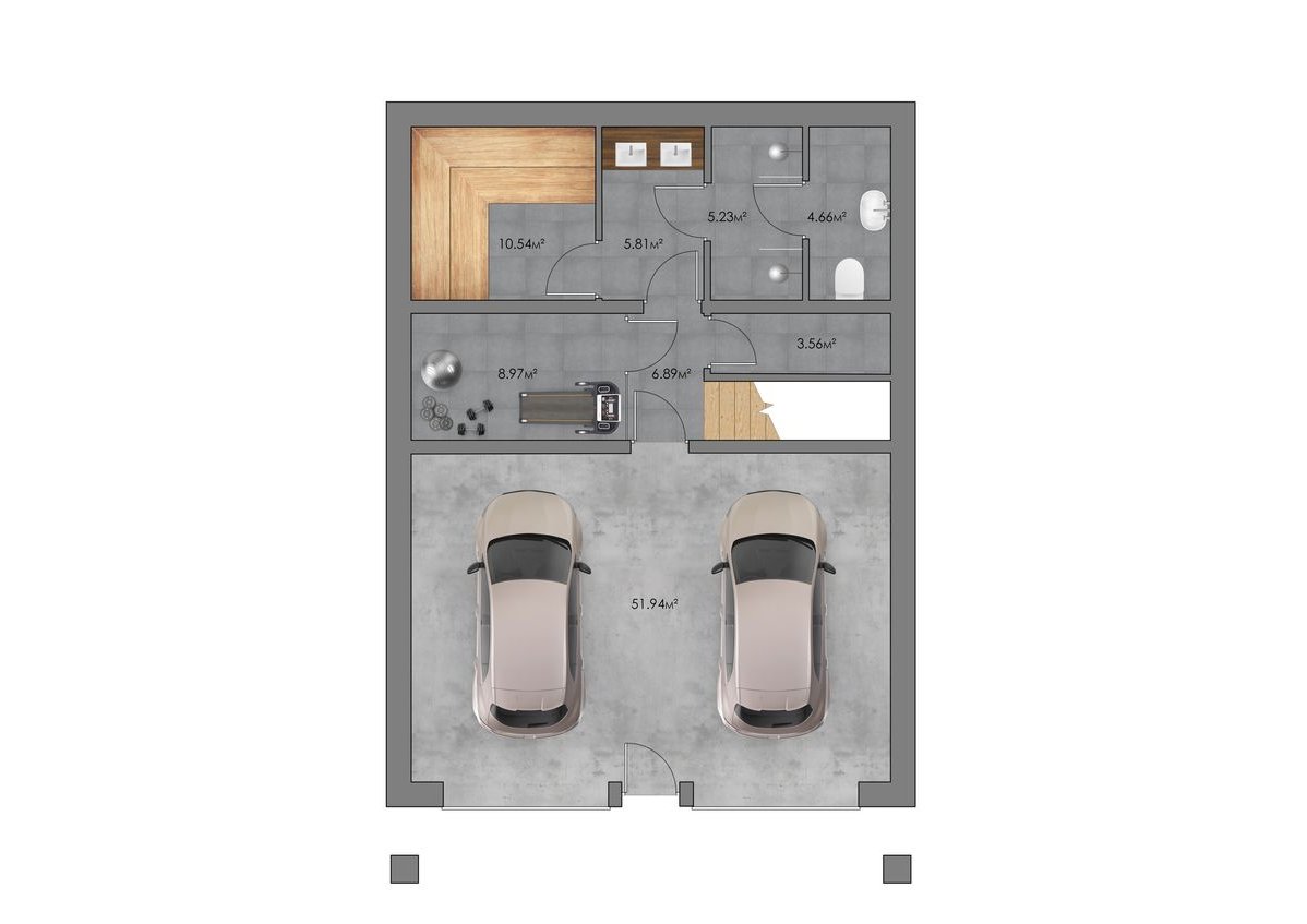 – garaż z dwoma miejscami postojowymi (51,94m²),