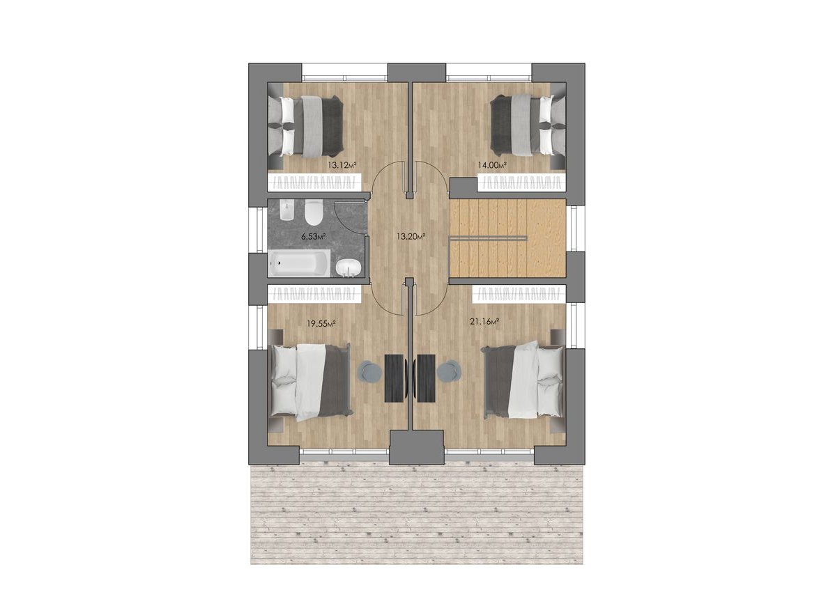 – sypialnia II (19,55m²) z wyjściem na taras z widokiem na Babią Górę i Beskidy,