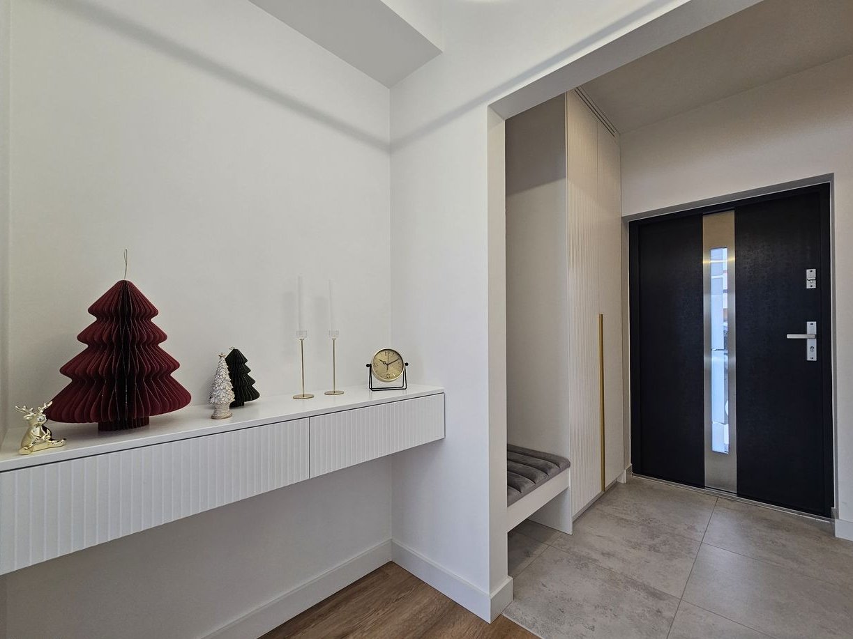 Dom zachwyca już od wejścia spójną stylistyką, doskonałymi proporcjami pomieszczeń oraz dbałością o detale. Jasna kolorystyka, wysokiej jakości materiały i nowoczesne rozwiązania tworzą wnętrze, które jest jednocześnie eleganckie i bardzo funkcjonalne.