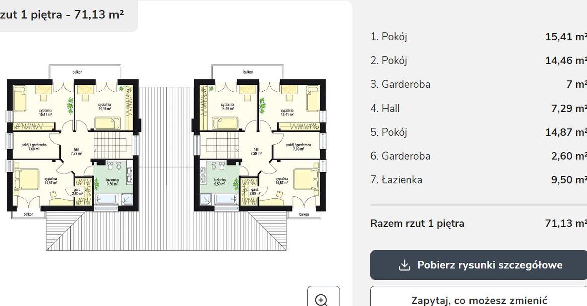 Lewa strona dostępna w wyższej cenie (o 30 tys. zł), z uwagi na większą działkę – ok. 600 m², dodatkowo jest również wykopana studnia głębinowa pod podlewanie ogrodowe.