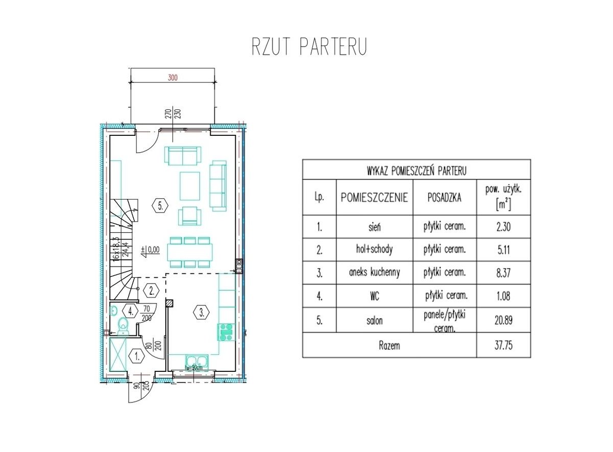 Dodatkowym atutem jest możliwość wydzielenia dodatkowego pokoju na parterze kosztem zmniejszenia aneksu kuchennego, co stanowi idealne rozwiązanie m.in. dla osoby starszej, gabinetu lub pokoju gościnnego.