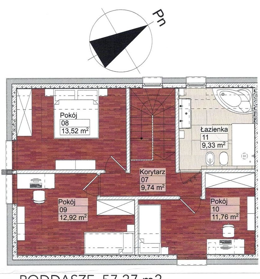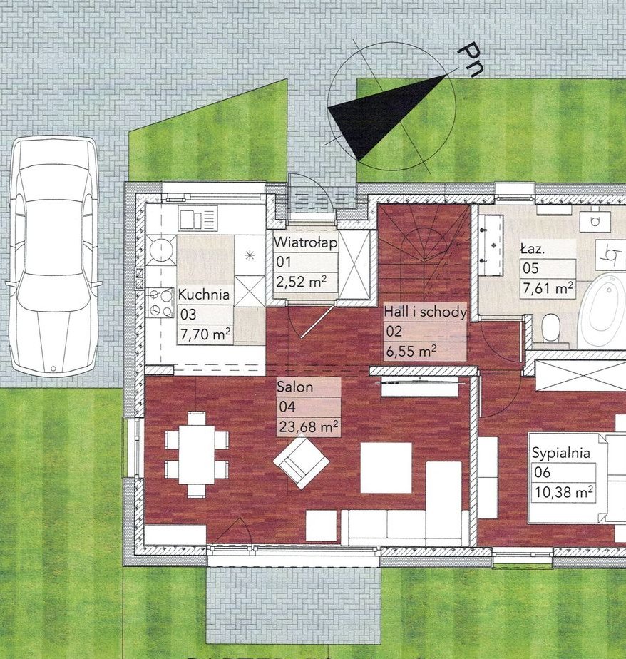 Sercem domu jest przestronny salon . Otwarta strefa dzienna, łącząca salon, jadalnię i kuchnię, zapewnia domownikom przestrzeń do wspólnego spędzania czasu i komfortowego wypoczynku. Na parterze znajduje się również łazienka i dodatkowy pokój - dla gości lub z przeznaczeniem na domowe biuro. Na poddaszu są 3 pokoje i łazienka. Każdy dom posiada dwustanowiskowe miejsce postojowe.