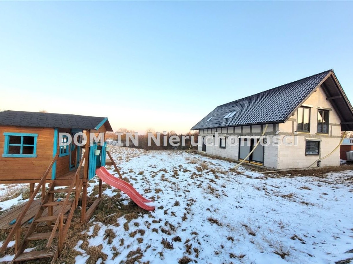 Dom nowy do wykończenia o powierzchni całkowitej 180m2 (użytkowej 160 m2 ) położony na płaskiej działce o powierzchni 851m2.