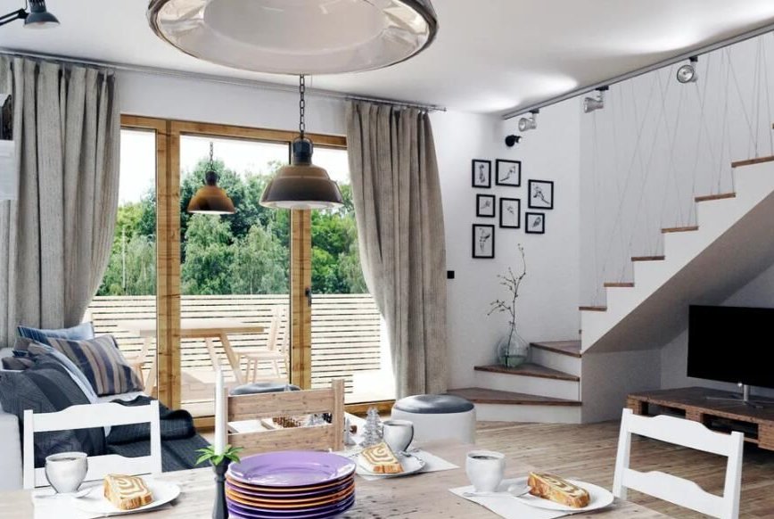 Parter to około 70,20 m² i stanowi strefę dzienną: