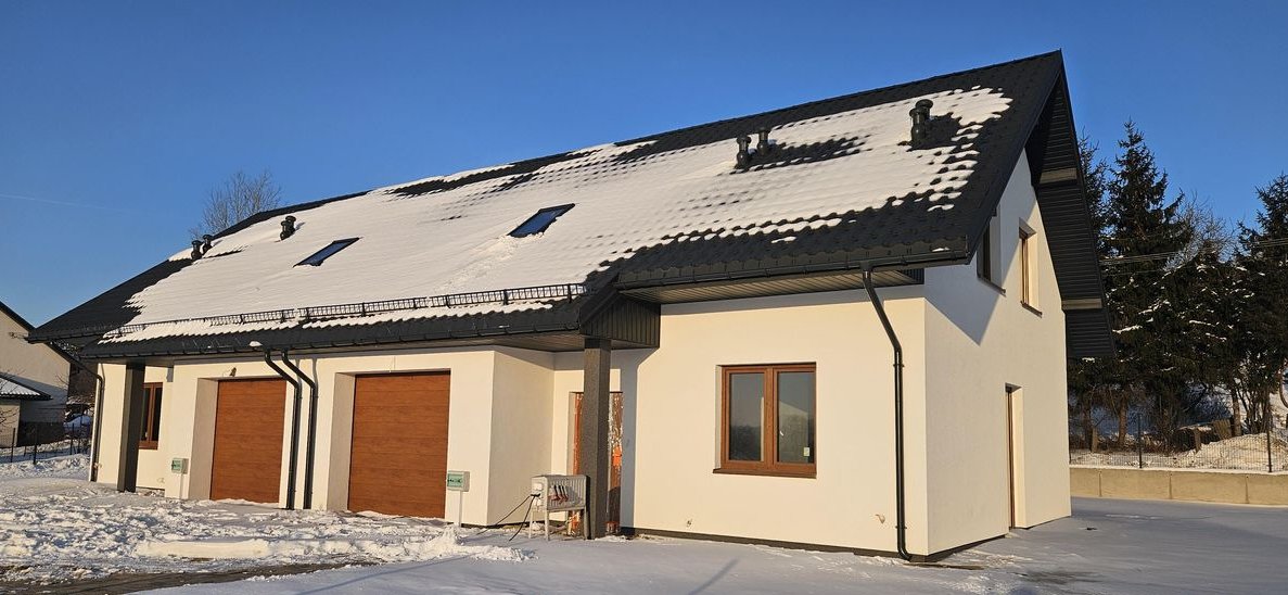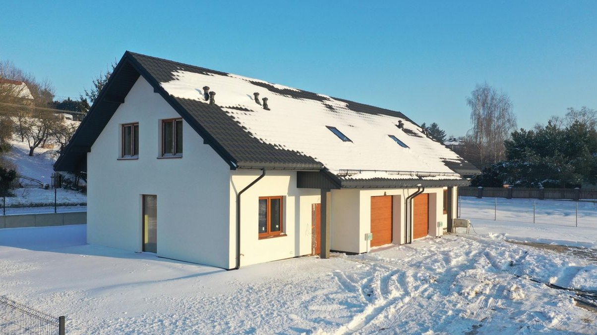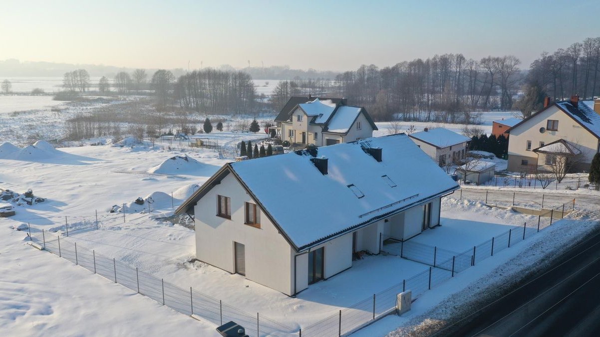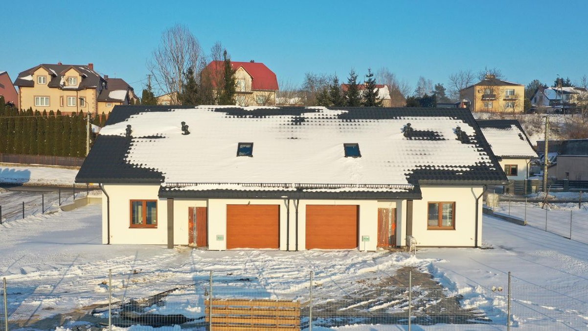 Oferujemy nowy dom w zabudowie bliźniaczej, wzorowany na funkcjonalnym projekcie „Biała z garażem 1-st.”. Budynki są wybudowane i pozostają w trakcie odbiorów – to duża przewaga, bo kupujesz dom gotowy do wykończenia i szybkiego zamieszkania.