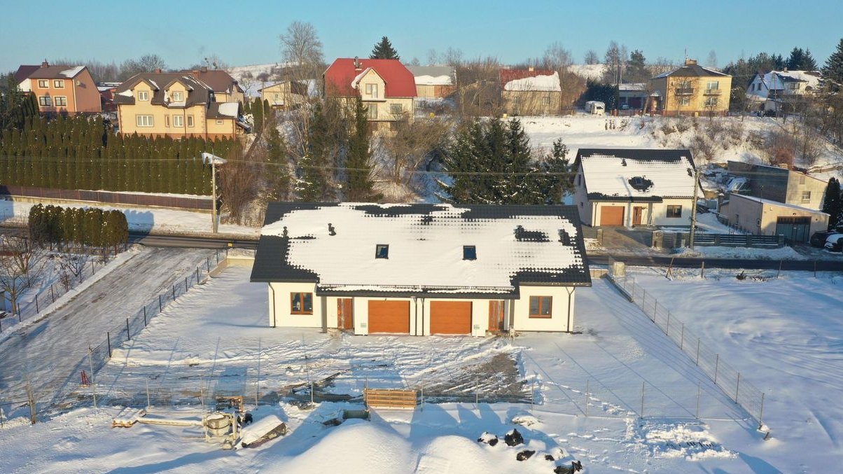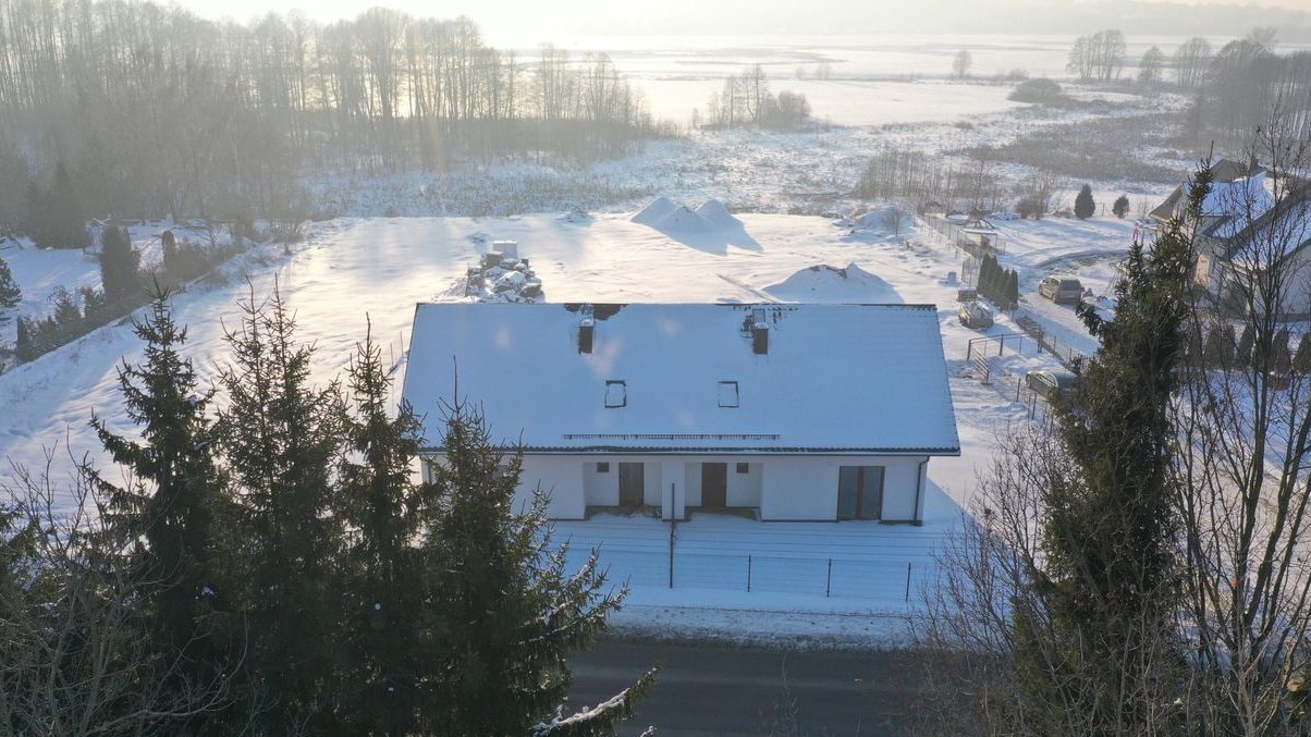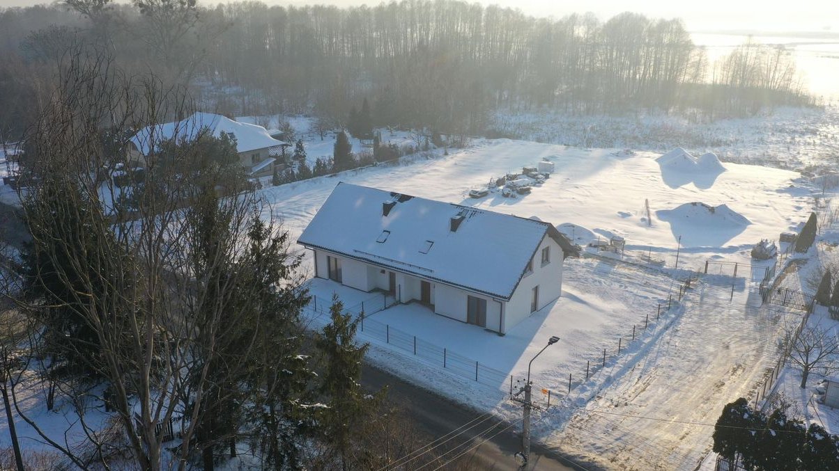 Nieruchomość ma bardzo dobrze przygotowaną infrastrukturę: zjazd z drogi asfaltowej, droga wewnętrzna z kostki brukowej, podjazd i opaska (cokół) wokół budynku z kostki oraz taras. W praktyce oznacza to mniejszy zakres prac po zakupie i szybsze domknięcie całej inwestycji po stronie nabywcy.