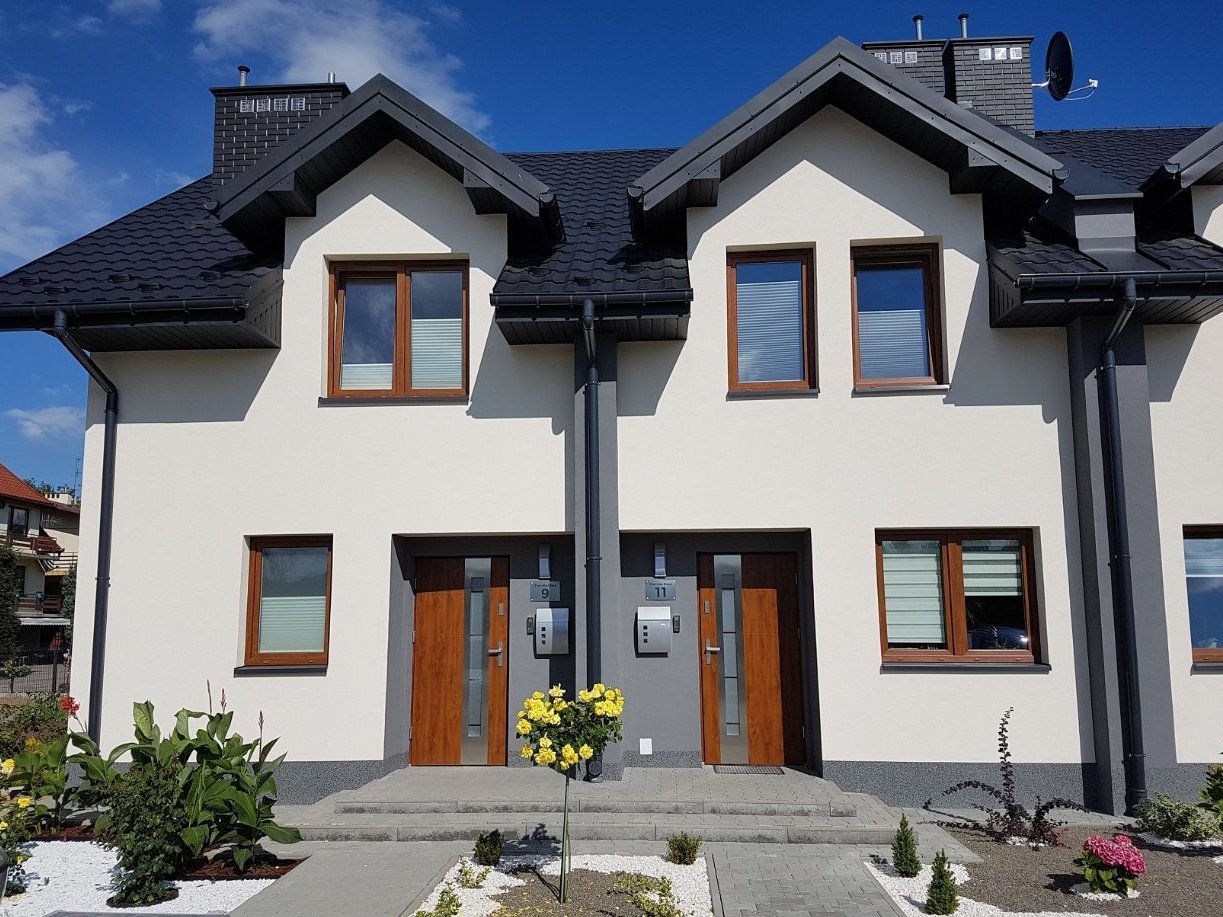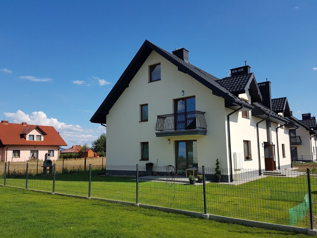 Luksusowe i energooszczędne mieszkania i domy. Zespół (docelowo) czternastu budynków położonych w spokojnej okolicy na przedmieściach Nowego Sącza w otoczeniu domów jednorodzinnych i pięknej zieleni. Domy segmentowe całkowicie bez opłat czynszowych. Dogodna lokalizacja. W budynkach domofony. Każda nieruchomość posiada odrębną Księgę Wieczystą. Zakup na własność hipoteczną z udziałem w częściach wspólnych, działce i drodze. Miejsce parkingowe na podjeździe przed obiektem w cenie.