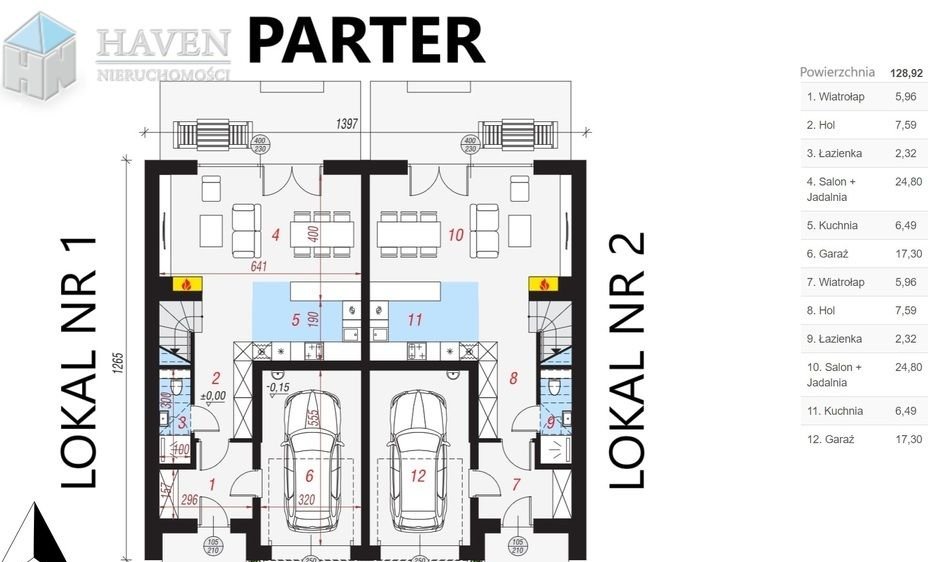 POWIERZCHNIE (dot. 1 segmentu): 112 m2 + garaż 17,30 m2 = 129,3 m2