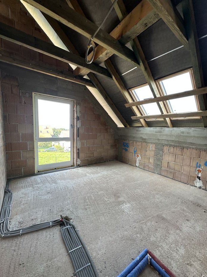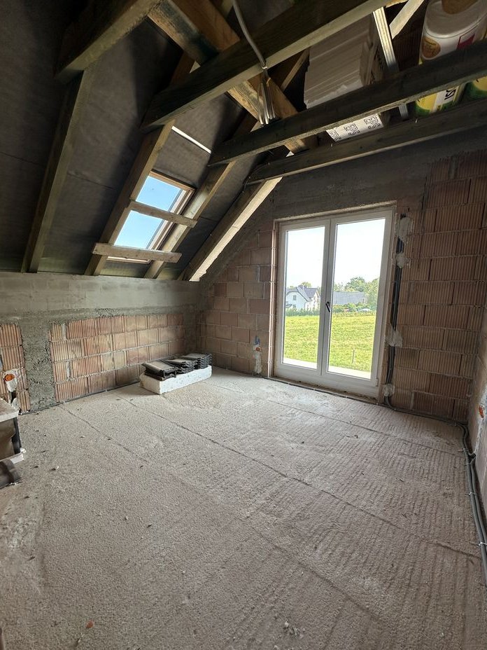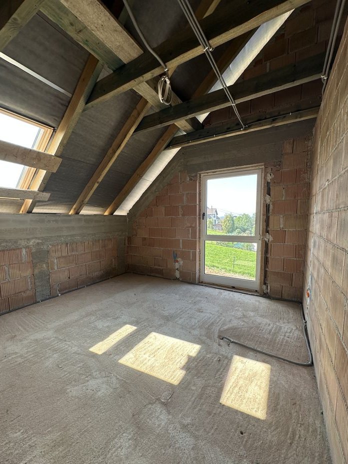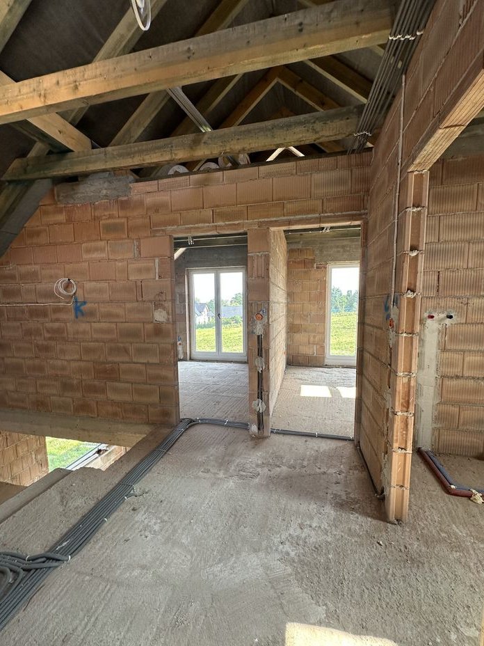 Rozprowadzona instalacja pod klimatyzację na piętrze w każdym pokoju, na parterze w salonie, kostka brukowa na wejściu do domu, podjazd do garażu i taras.