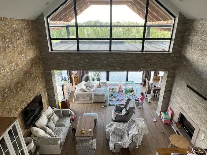 * Otwartego salonu z kuchnią i jadalnią (wysokość 5,5 m),