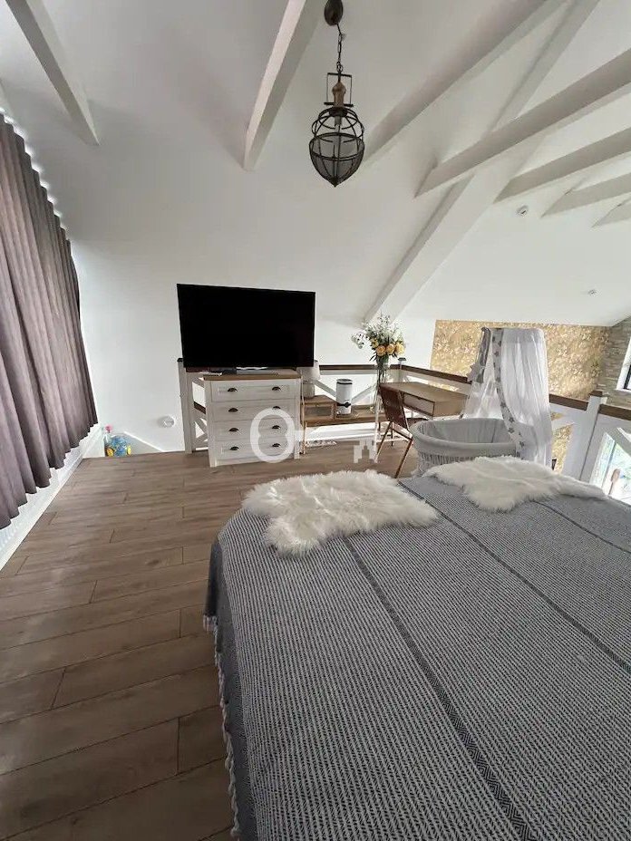 The property is located on Lake Narie in Niebrzydowo Wielkie, 200 m to the lake with a sandy descent to the water and a swimming pier. Quiet surroundings with numerous cycling paths, nature 2000, wild bird sanctuary. The house is located on a slope with a beautiful view of green hills and trees.