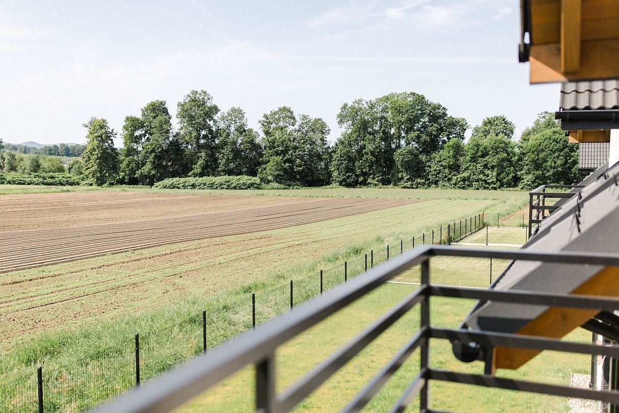 Spokojna, zielona okolica – widok na góry, stawy i ścieżki rowerowe.