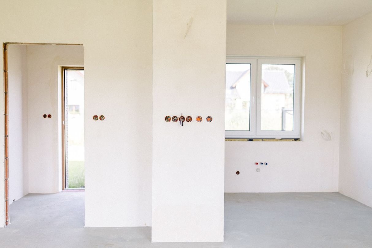 Stan: deweloperski plus– tynki gipsowe Knauf Diamant, okna Salamander w tym przesuwne HST w salonie, ocieplenie Austrotherm 20 cm+tynk silikonowy Kabe, dachówka Braas, instalacje gotowe (woda, prąd, gaz, światłowód, ogrzewanie podłogowe na obu kondygnacjach)