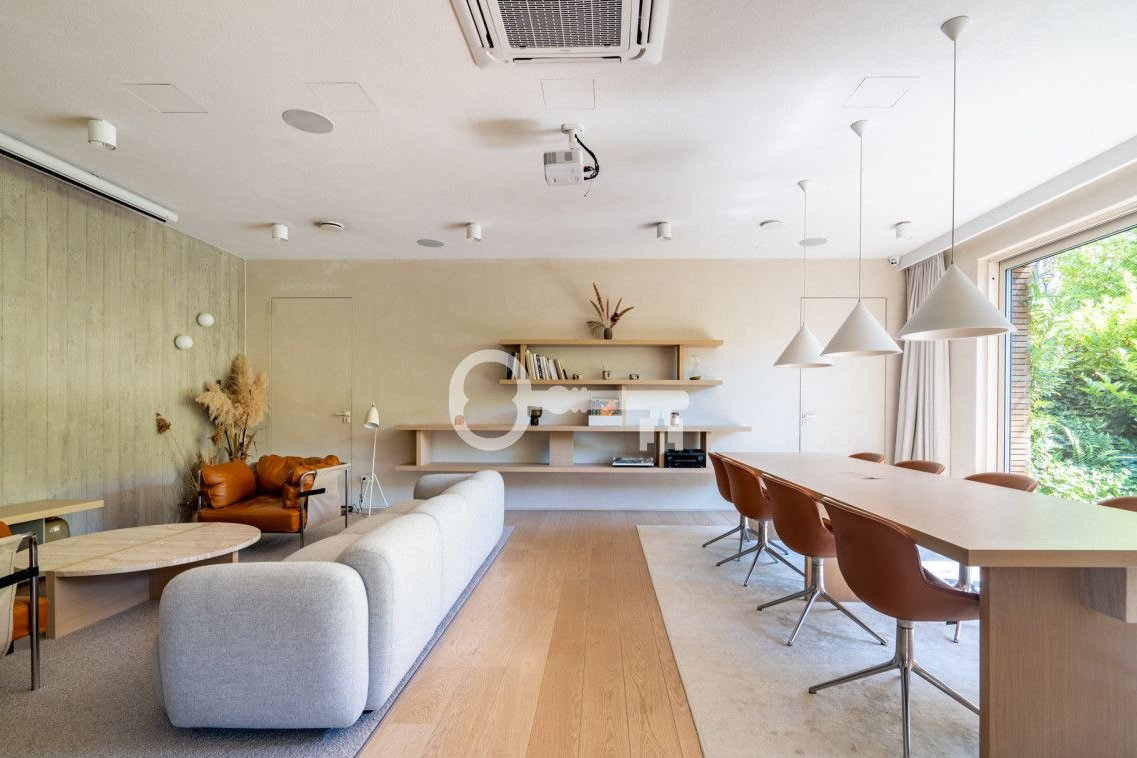 * spacious, bright living room with a kitchenette with an area of 24.54 m2 with access to a terrace with a garden,
