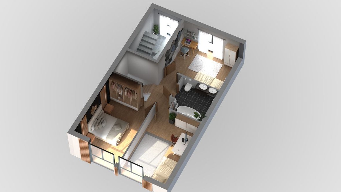 (2 pokoje + łazienka lub duży pokój + łazienka)