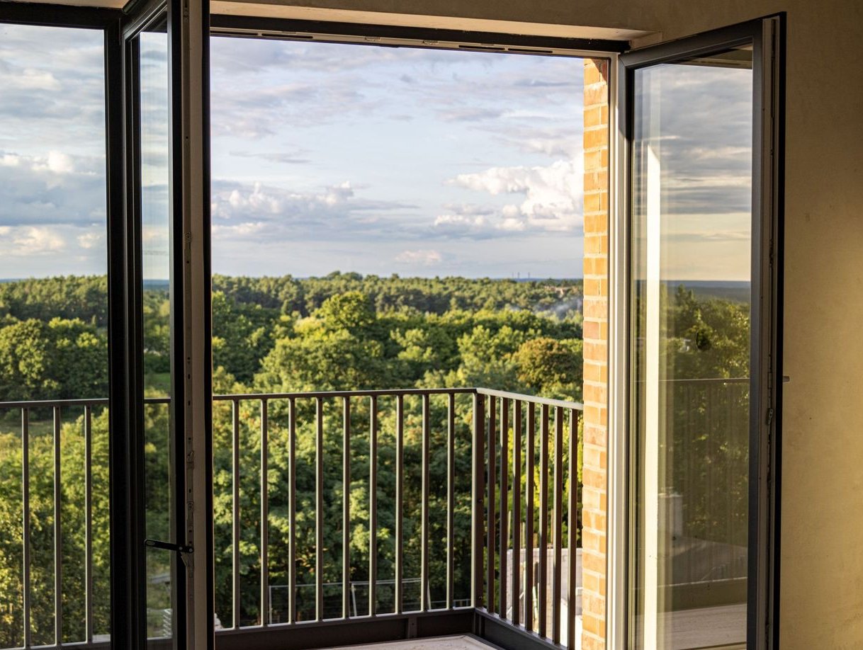 od 2. piętra spektakularne widoki, niżej bezpośrednio na zieleń