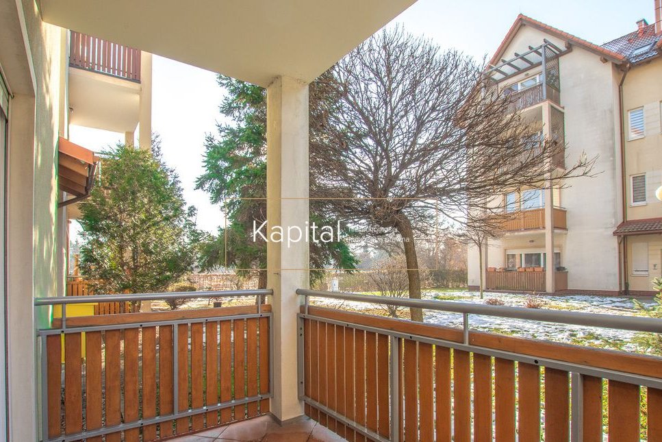Mieszkanie znajduje się na parterze, ma bardzo dobry układ z wydzieloną częścią dzienną i bardziej prywatną strefą z sypialniami i łazienką. Przy kuchni znajduje się przestronna spiżarnia, w której zamontowano też piec gazowy, dzięki czemu w łazience nic nie zabiera cennego miejsca. Do mieszkania przynależy duży taras z widokiem na wysoką zieleń gwarantującą sporo prywatności. Dodatkowo z mieszkaniem sprzedawane jest miejsce postojowe na zamkniętym terenie osiedla (dodatkowo dookoła osiedla znajduje się masa wolnych wspólnych miejsc, więc z parkowaniem nigdy nie ma problemu)