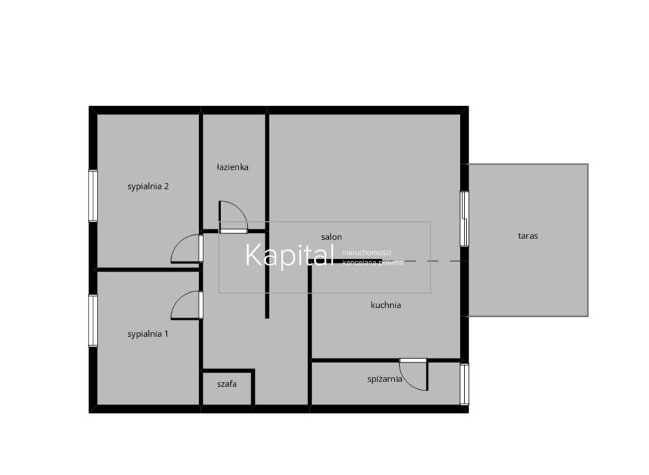 - przestronny salon z wydzieloną kuchnią i spiżarnią,