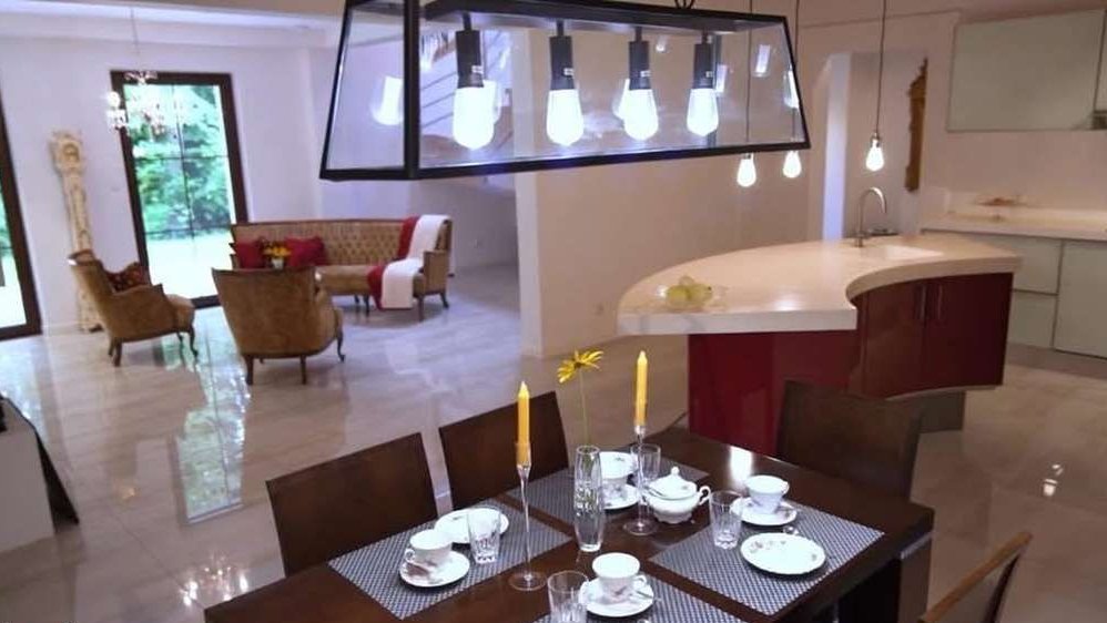 Na sprzedaż dom o powierzchni 180 m² z użytkowym poddaszem oraz niezależną sypialnią nad garażem (24 m² z łazienką). Budynek posiada dwa tarasy – w tym taras nad brzegiem rzeki.