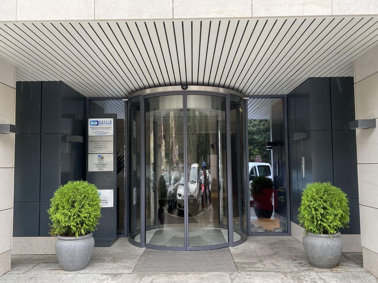 At the exclusive disposal of residents is a large swimming pool with natural light located on the ground level, a sauna and a fitness room. The building is equipped with three elevators and a two-story underground garage. The facade is made of sandstone and glass, the staircase and corridors are covered with white marble. Entrance is possible from Ogrodowa street and Solidarności Avenue.