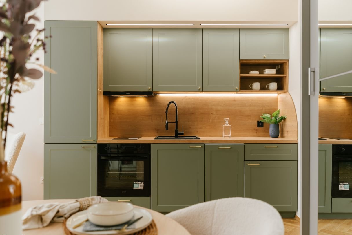 Kuchnia: Stylowa kuchnia w zielonym kolorze, wykonana z wysokiej jakości materiałów,