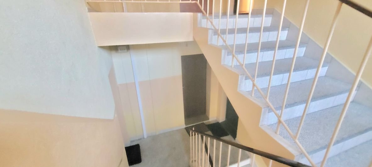 Budynek ocieplony z nową elewacją, klatka schodowa odświeżona.